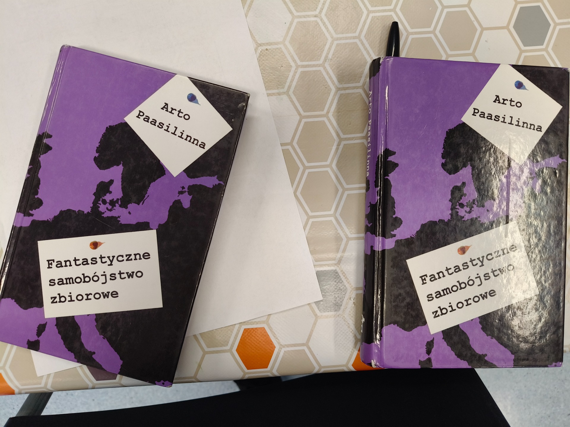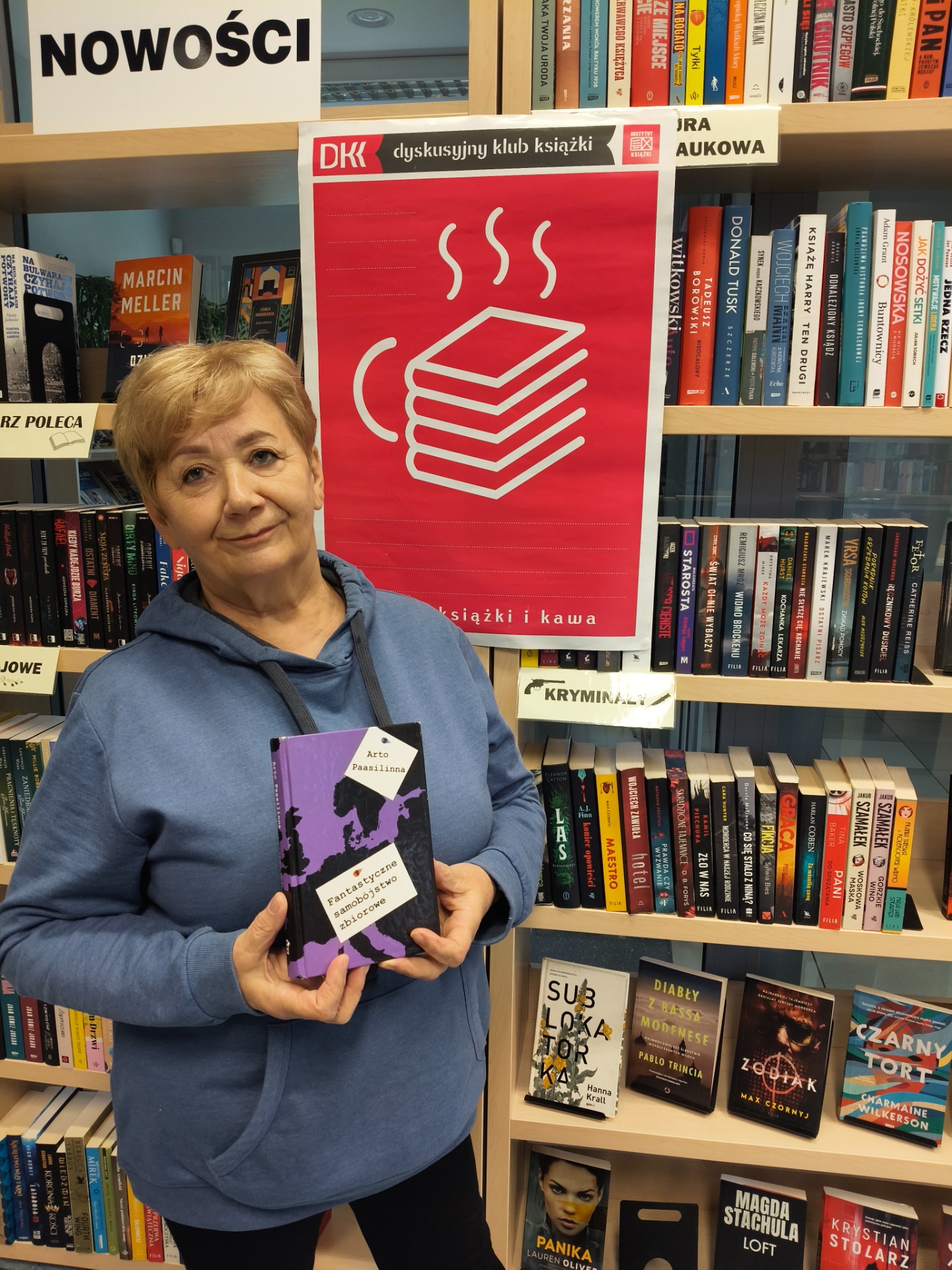 Za oknem chłód, ale w bibliotece panowała ciepła, kameralna atmosfera. Ostatnie spotkanie Dyskusyjnego Klubu Książki poświęciliśmy nietypowej lekturze – powieści Arto Paasilinny „Fantastyczne zbiorowe samob***”**, która dzięki swojemu specyficznemu, czarnemu humorowi i absurdalnym sytuacjom sprowokowała wiele śmiechu i ciekawych dyskusji. Choć temat z pozoru może wydawać się poważny, autor potraktował go z dużym dystansem, a uczestnicy spotkania chętnie dzielili się swoimi przemyśleniami – nie tylko o książce, ale też o tym, co w literaturze pozwala nam śmiać się z rzeczy trudnych.