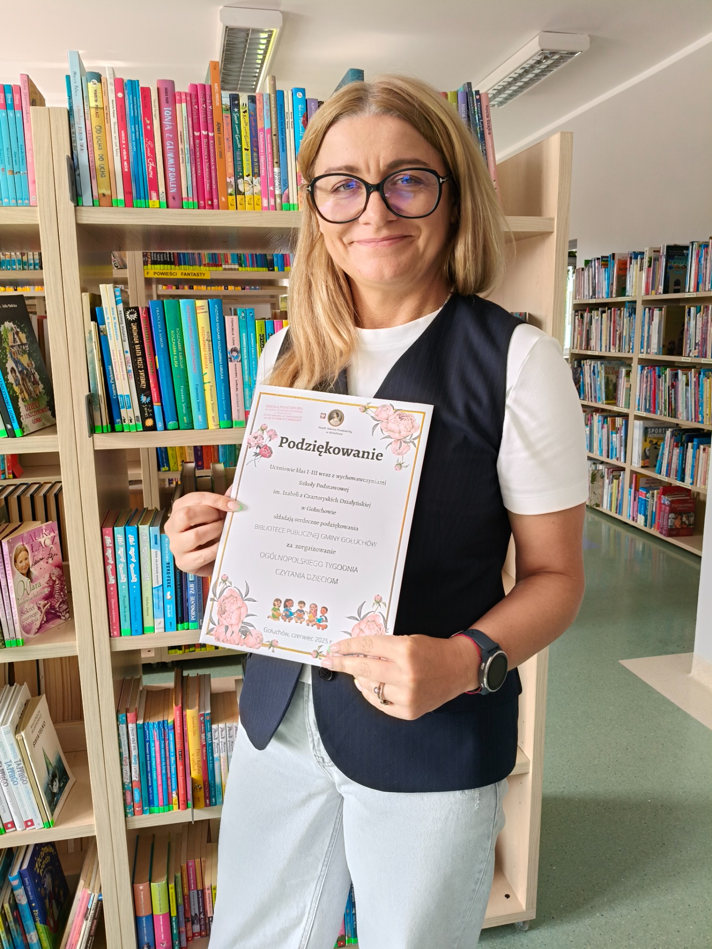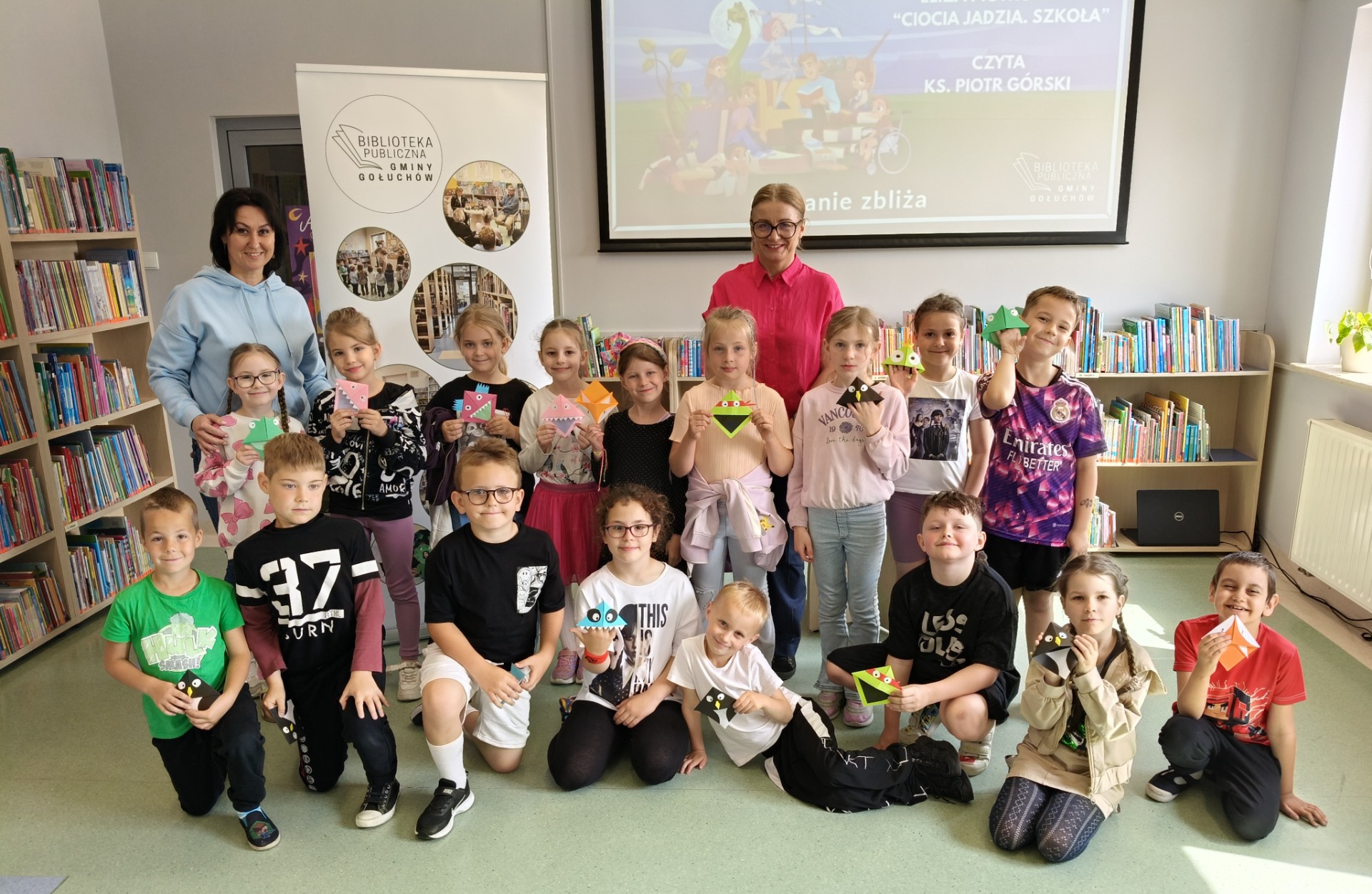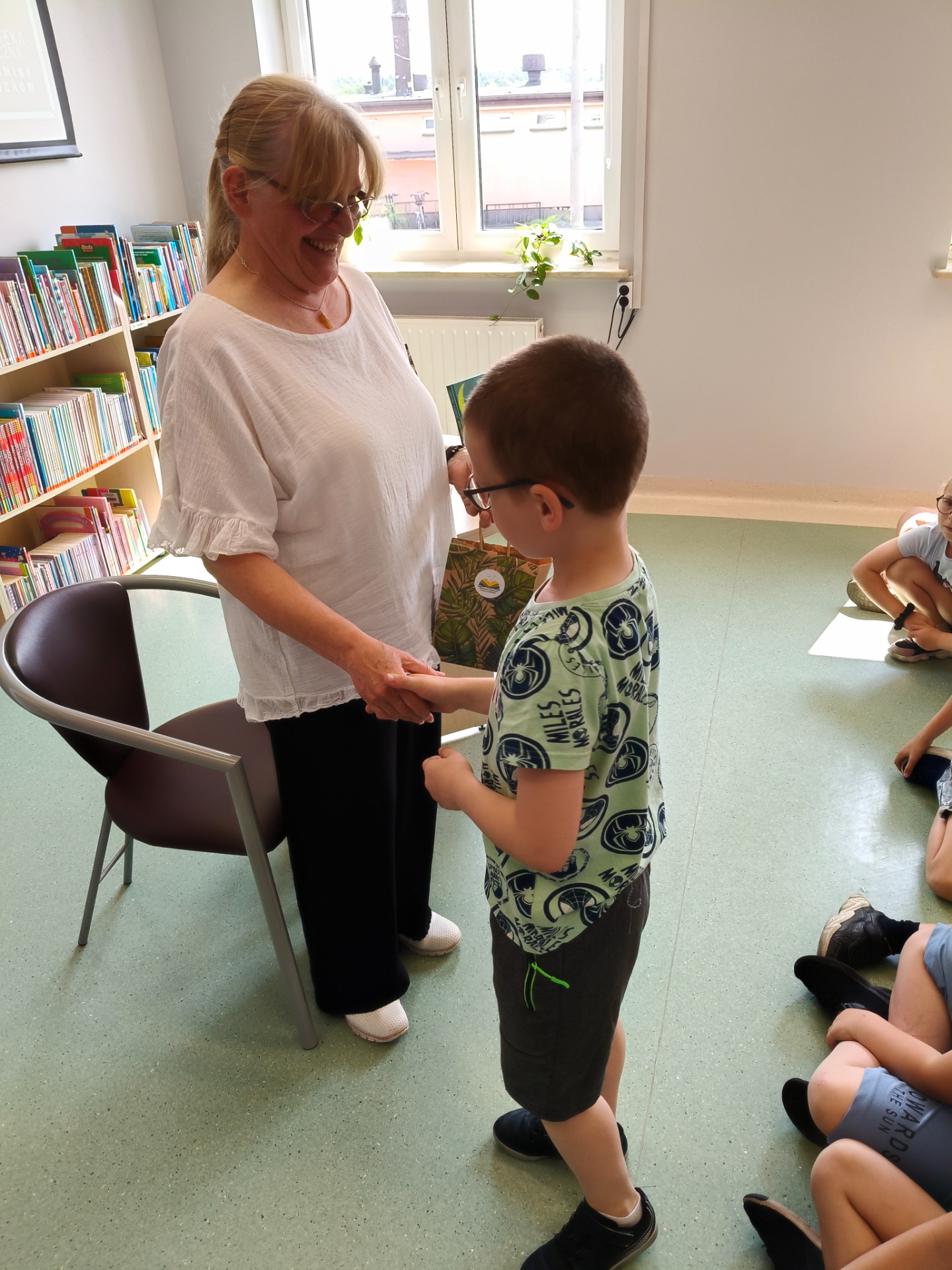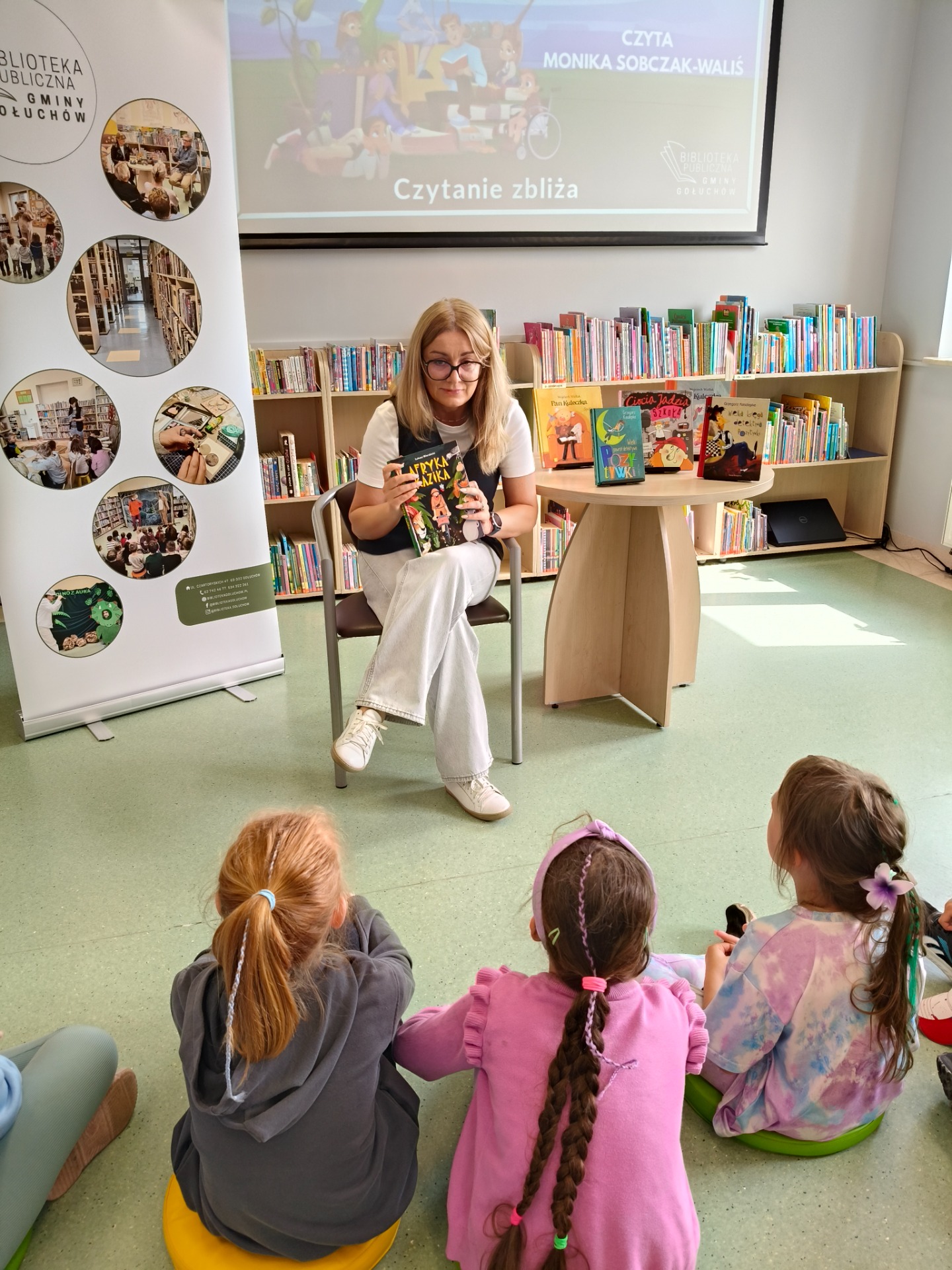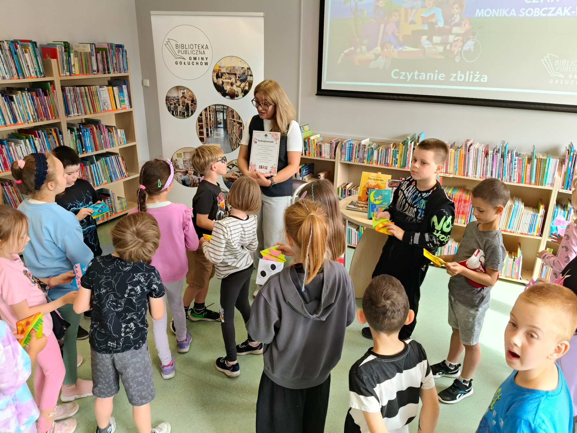 Na zakończenie tygodnia dzieci wysłuchały fragmentów książki „Afryka Kazika” Łukasza Wierzbickiego. Lektorką była Monika Sobczak-Waliś, dyrektor Biblioteki Publicznej Gminy Gołuchów. Opowieści o podróży przez egzotyczne kraje, pełne przygód i niezwykłych spotkań, przeniosły najmłodszych w zupełnie inny świat i pokazały, że czytanie to także sposób na odkrywanie odległych kultur.
