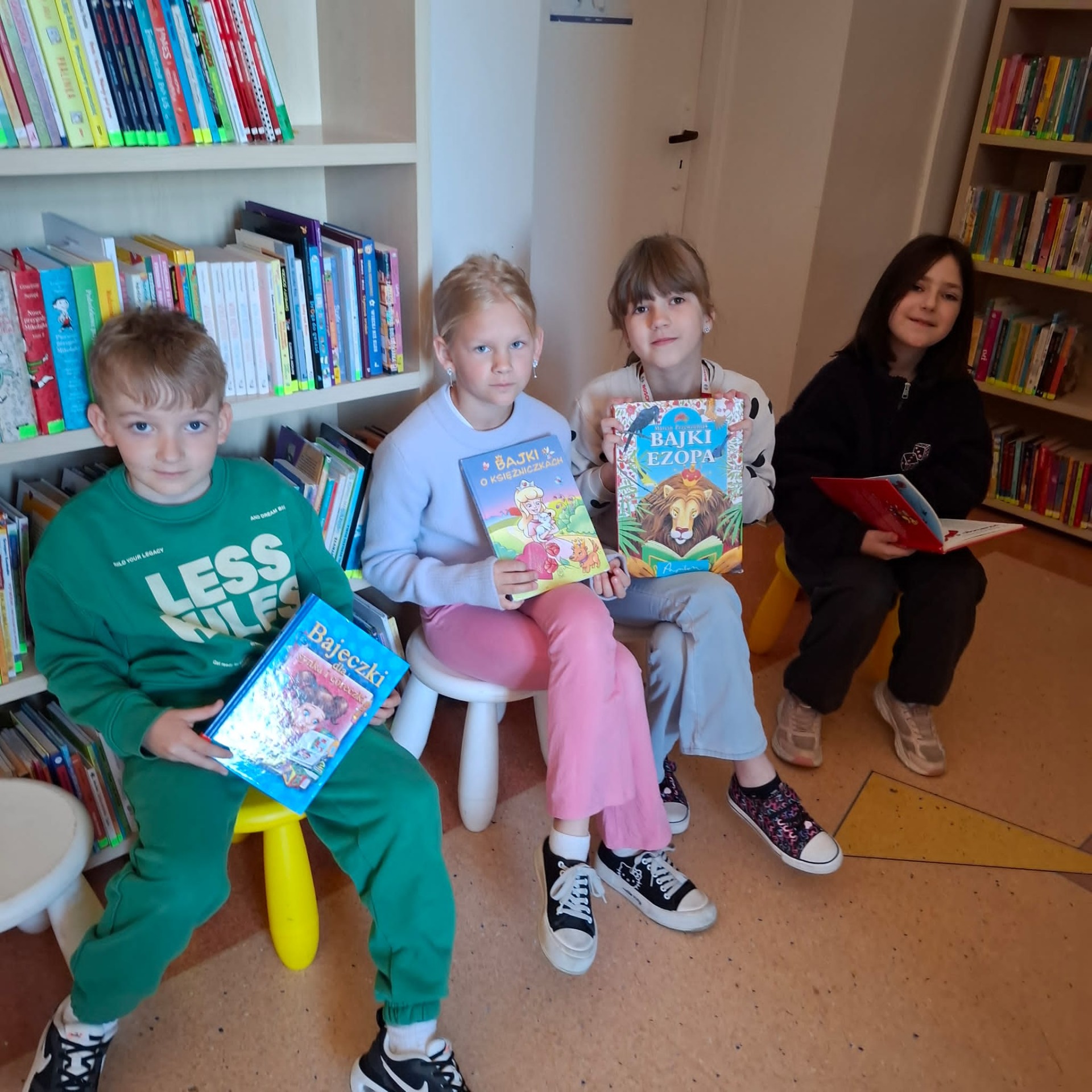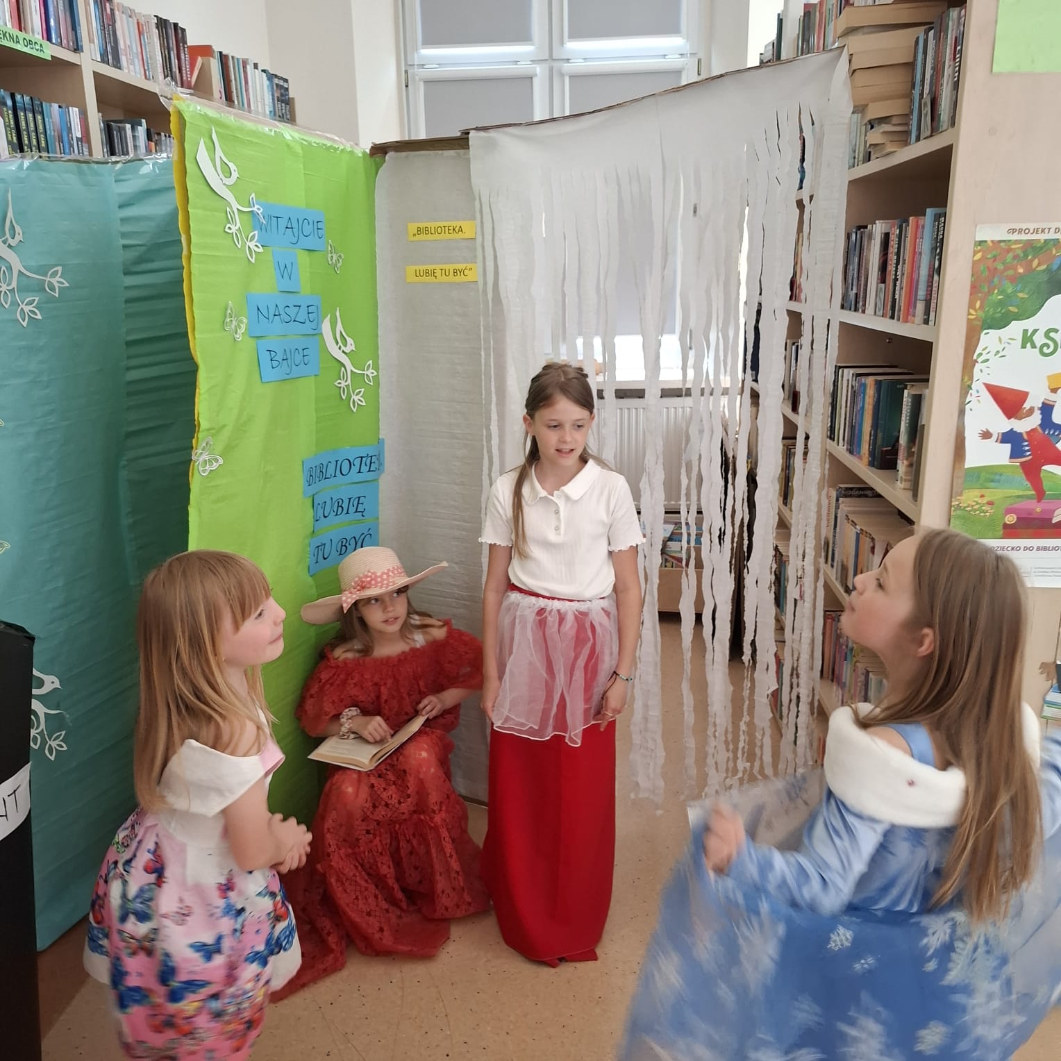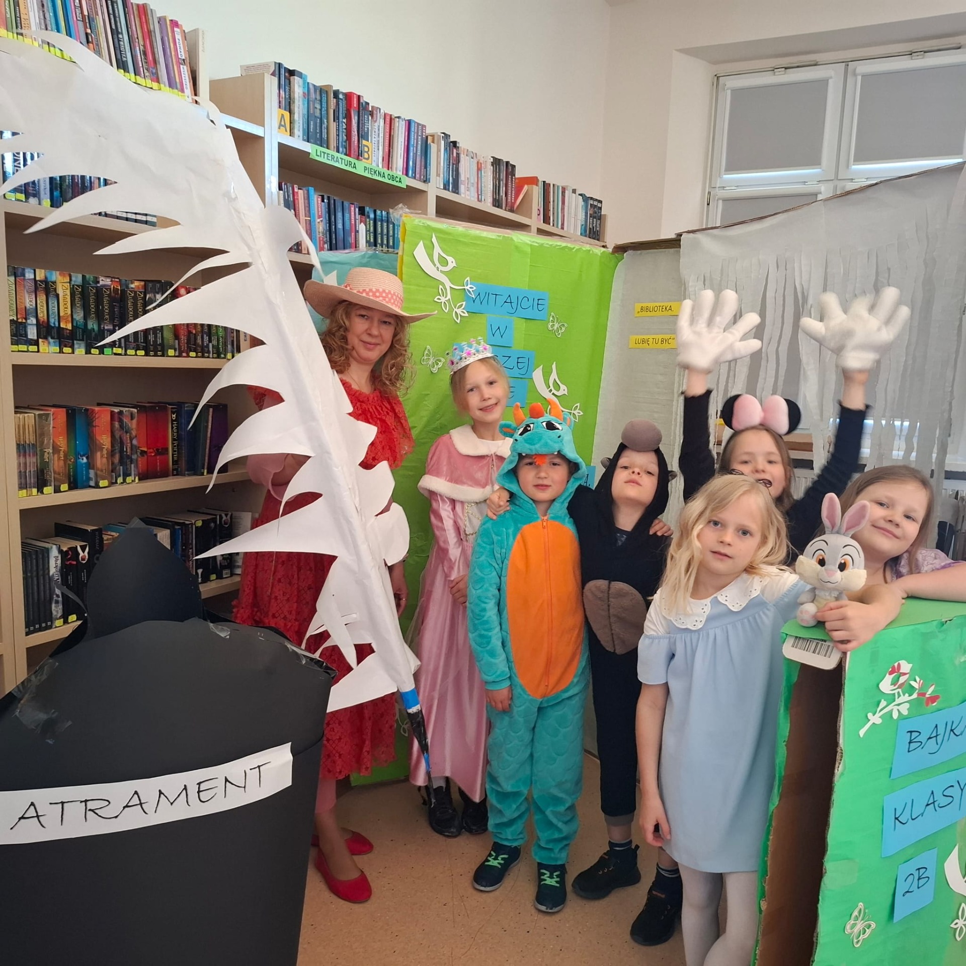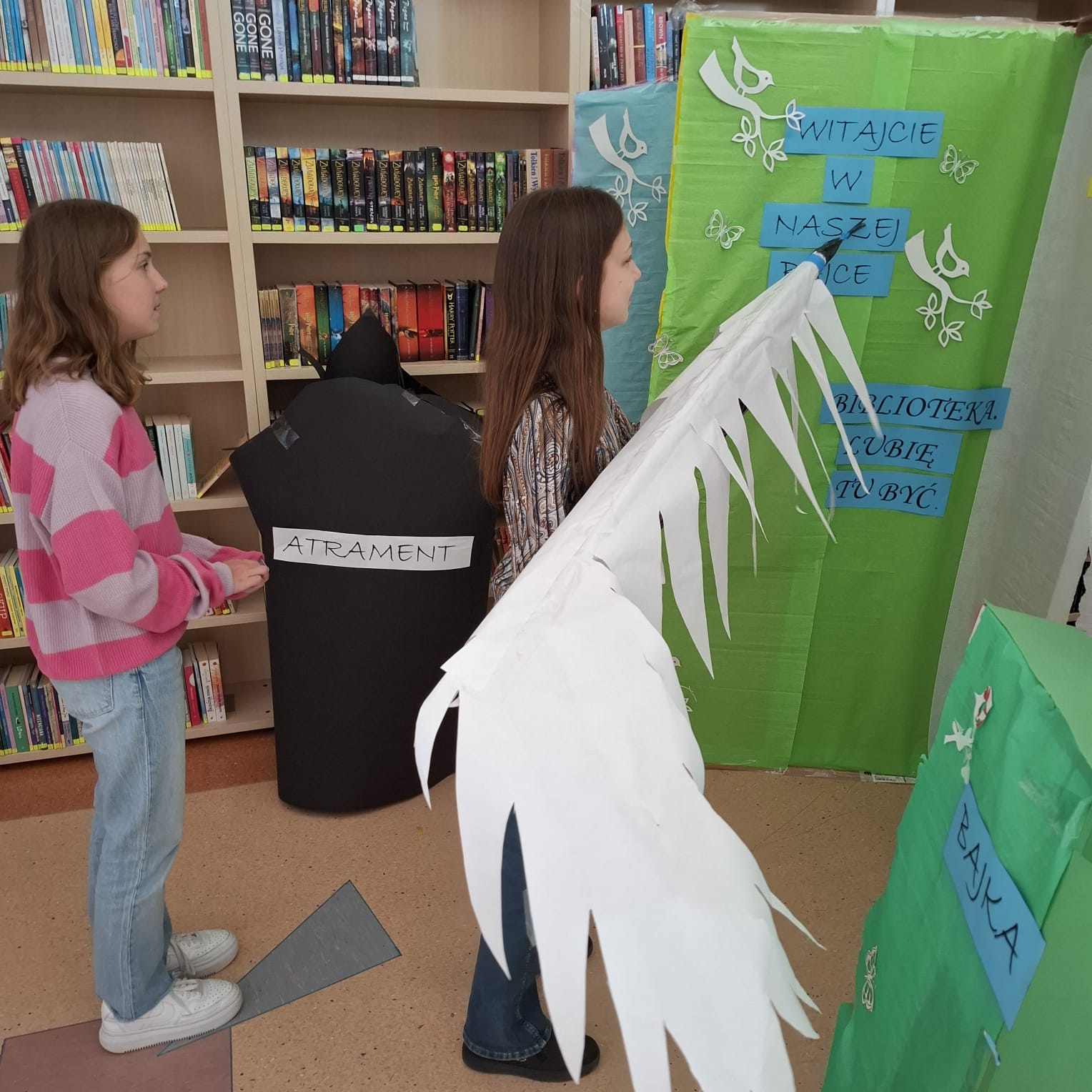 Pierwszym z nich było spotkanie z uczniami klasy 2b z Zespołu Szkolno-Przedszkolnego w Kościelnej Wsi. Pod okiem bibliotekarki Ani dzieci wspólnie stworzyły bajkę w ogromnej książce – pełnej wymyślonych bohaterów, niezwykłych przygód i fantastycznych zdarzeń. Do zabawy chętnie dołączyli także inni uczniowie, dzięki czemu powstała prawdziwa, wspólna opowieść, będąca efektem dziecięcej wyobraźni i współpracy.