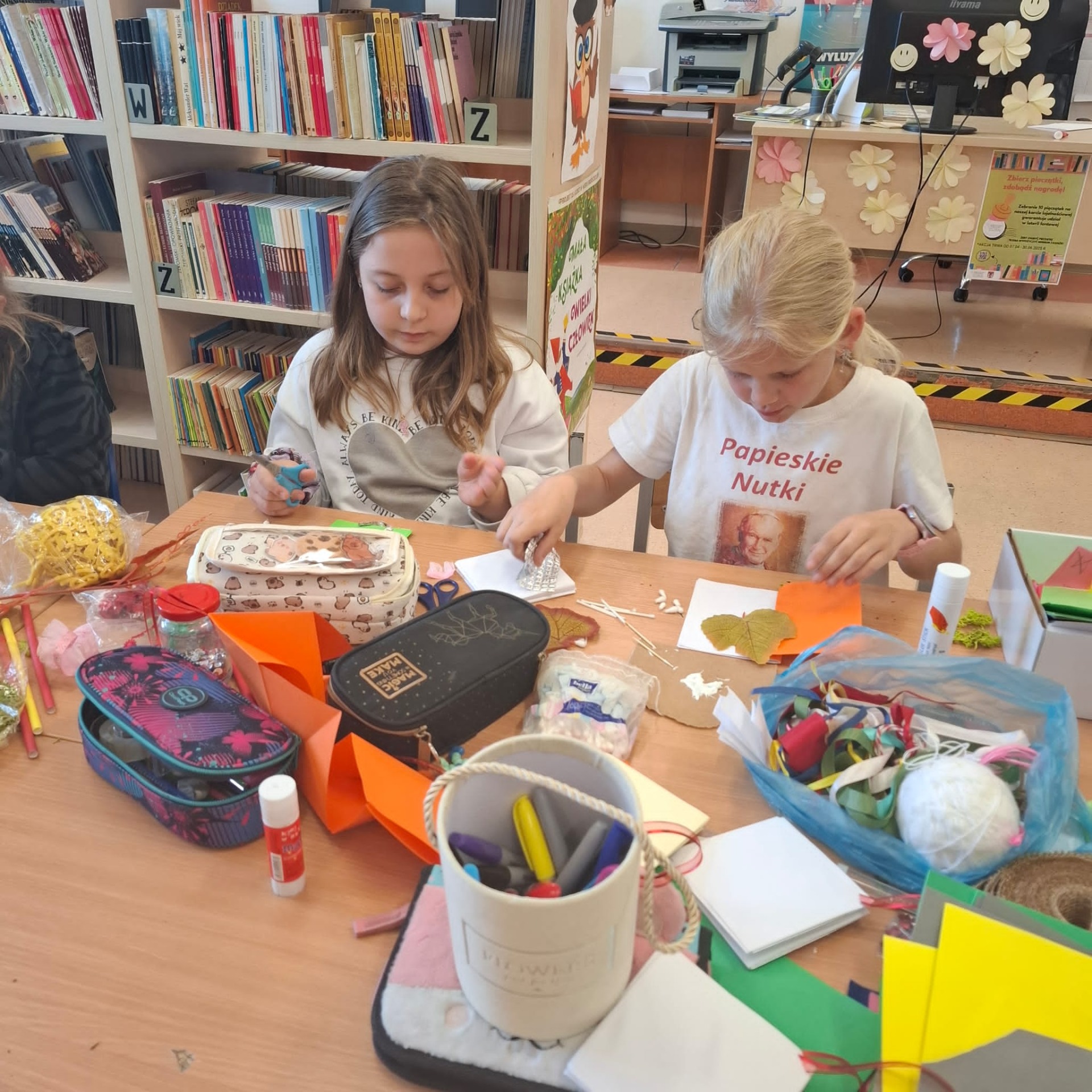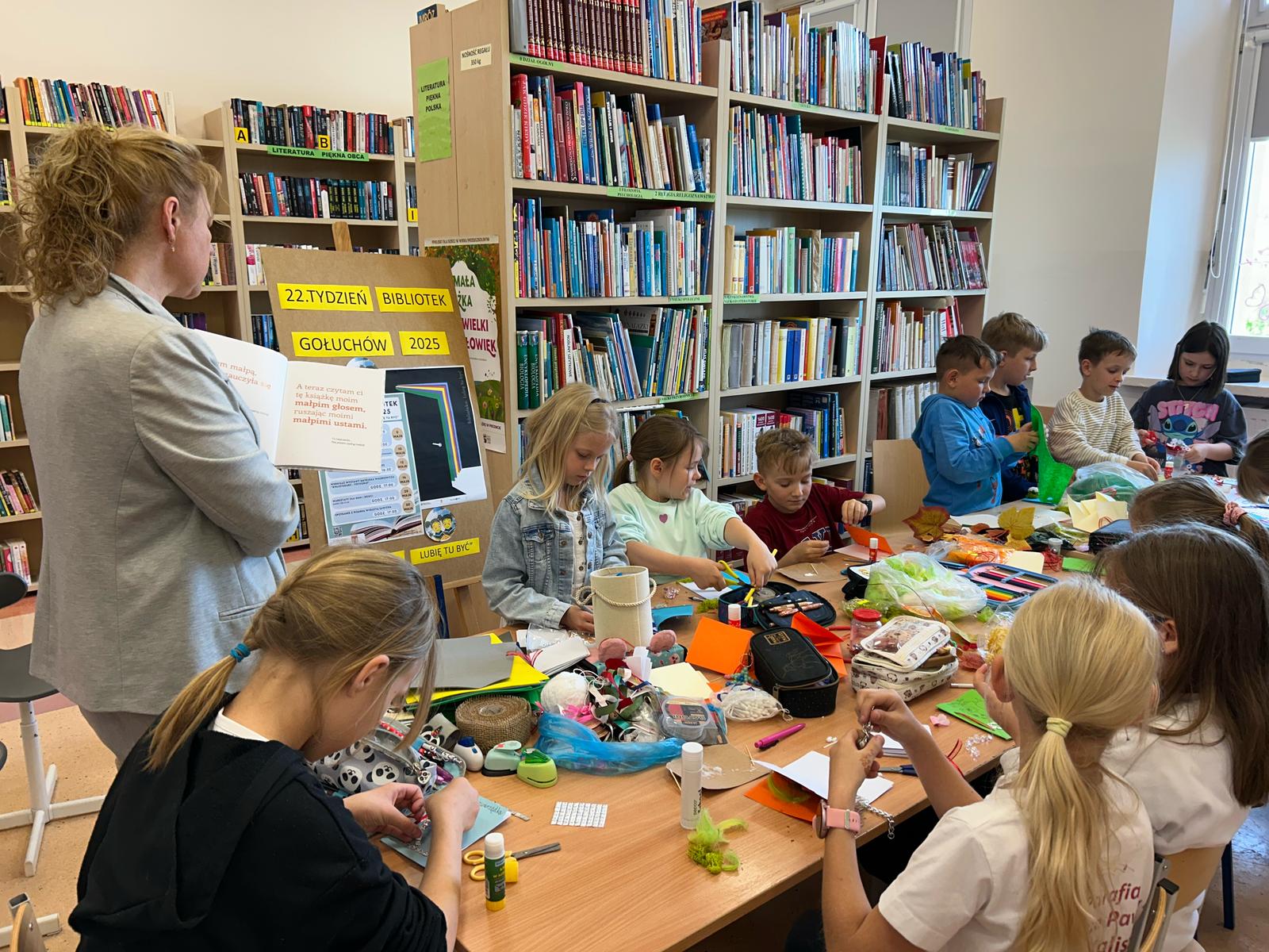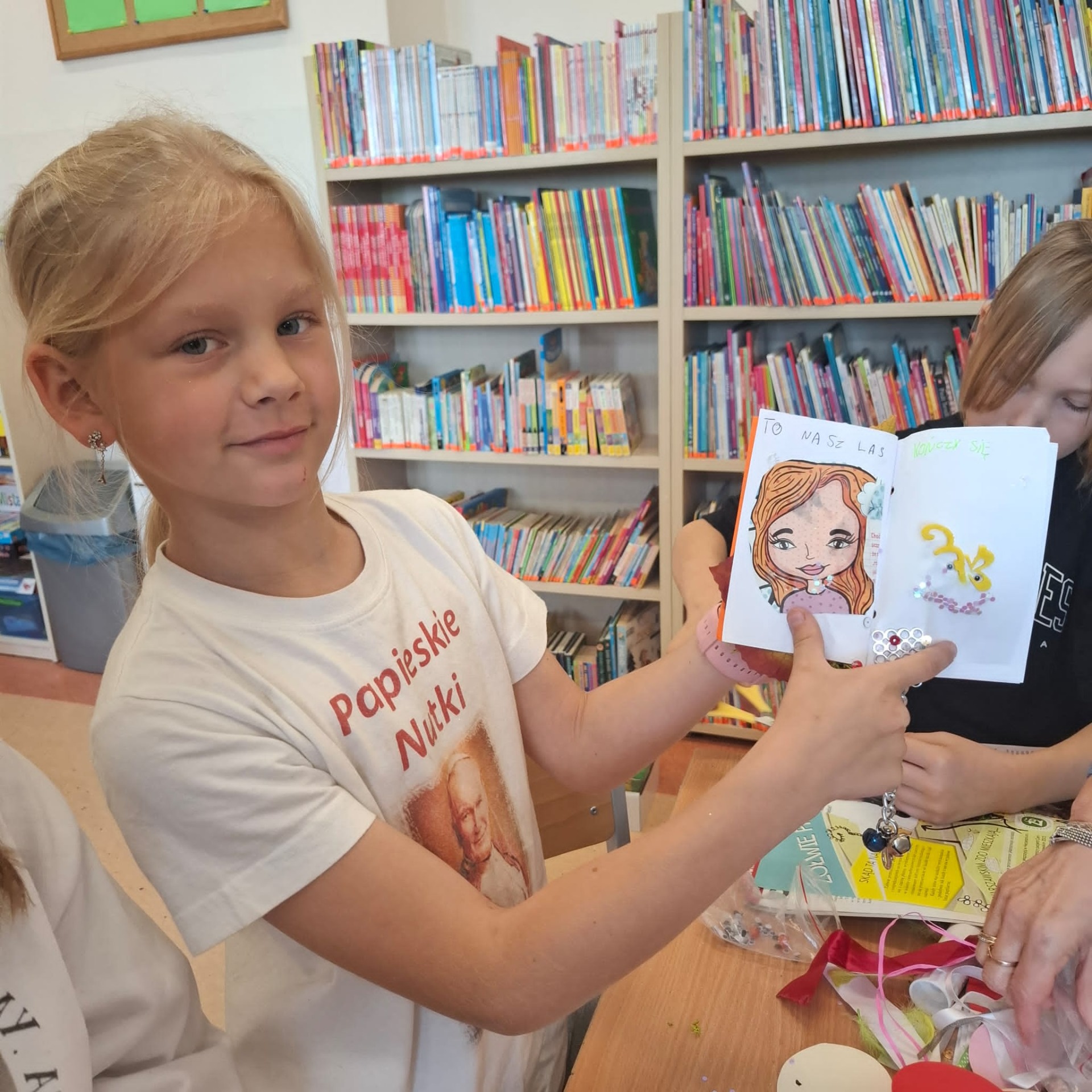 Nie zabrakło również zajęć artystycznych. Podczas warsztatów dzieci poznawały formę artbooków – książek artystycznych, w których historie opowiada się nie słowem, lecz obrazem. Wykorzystując różne techniki plastyczne, uczniowie tworzyli własne, unikalne dzieła, a następnie prezentowali je przed kolegami i koleżankami, dzieląc się swoimi pomysłami oraz przesłaniem ukrytym w pracach.