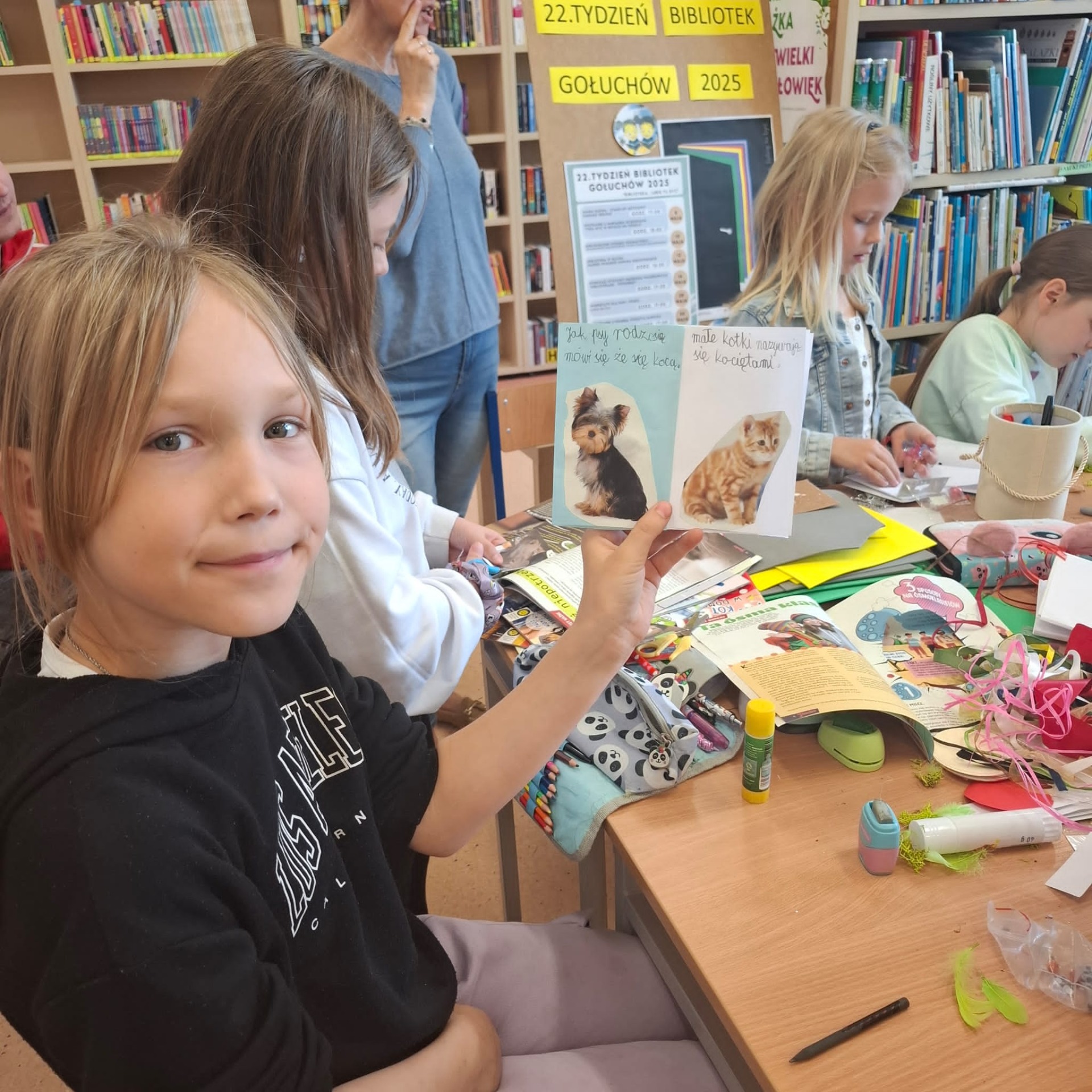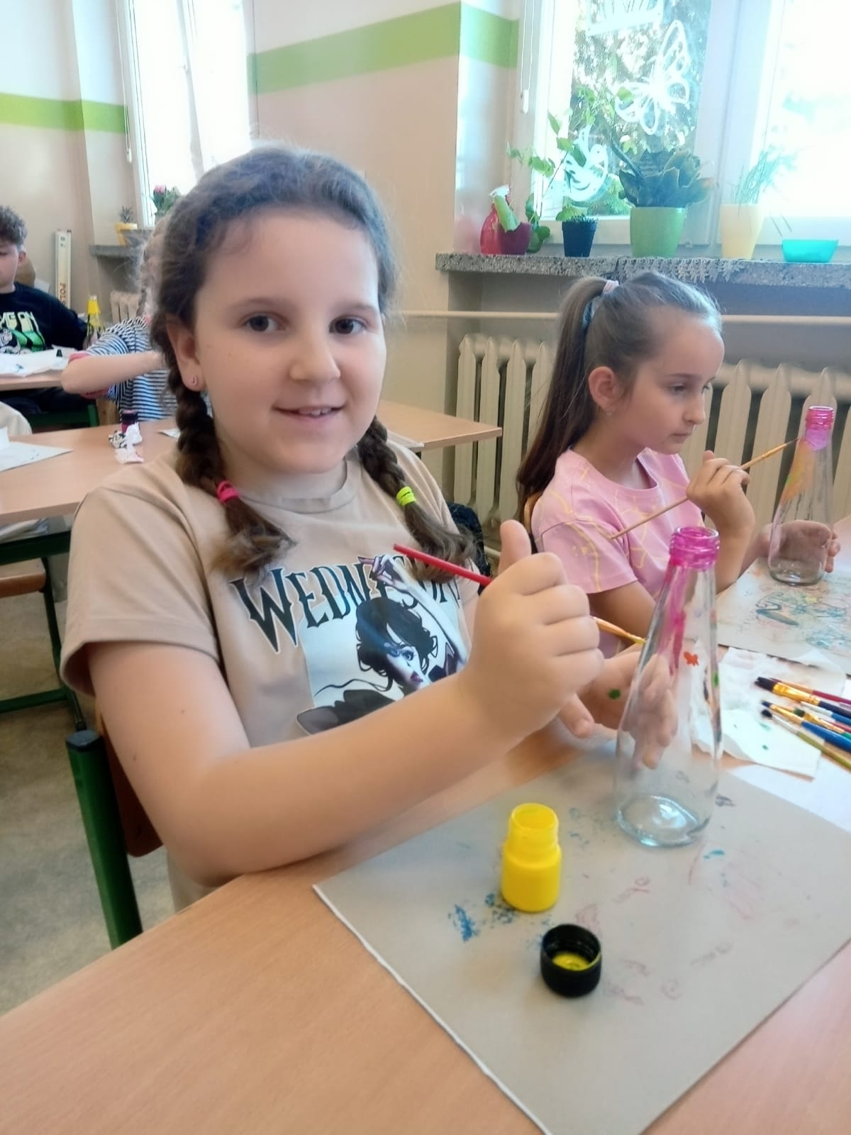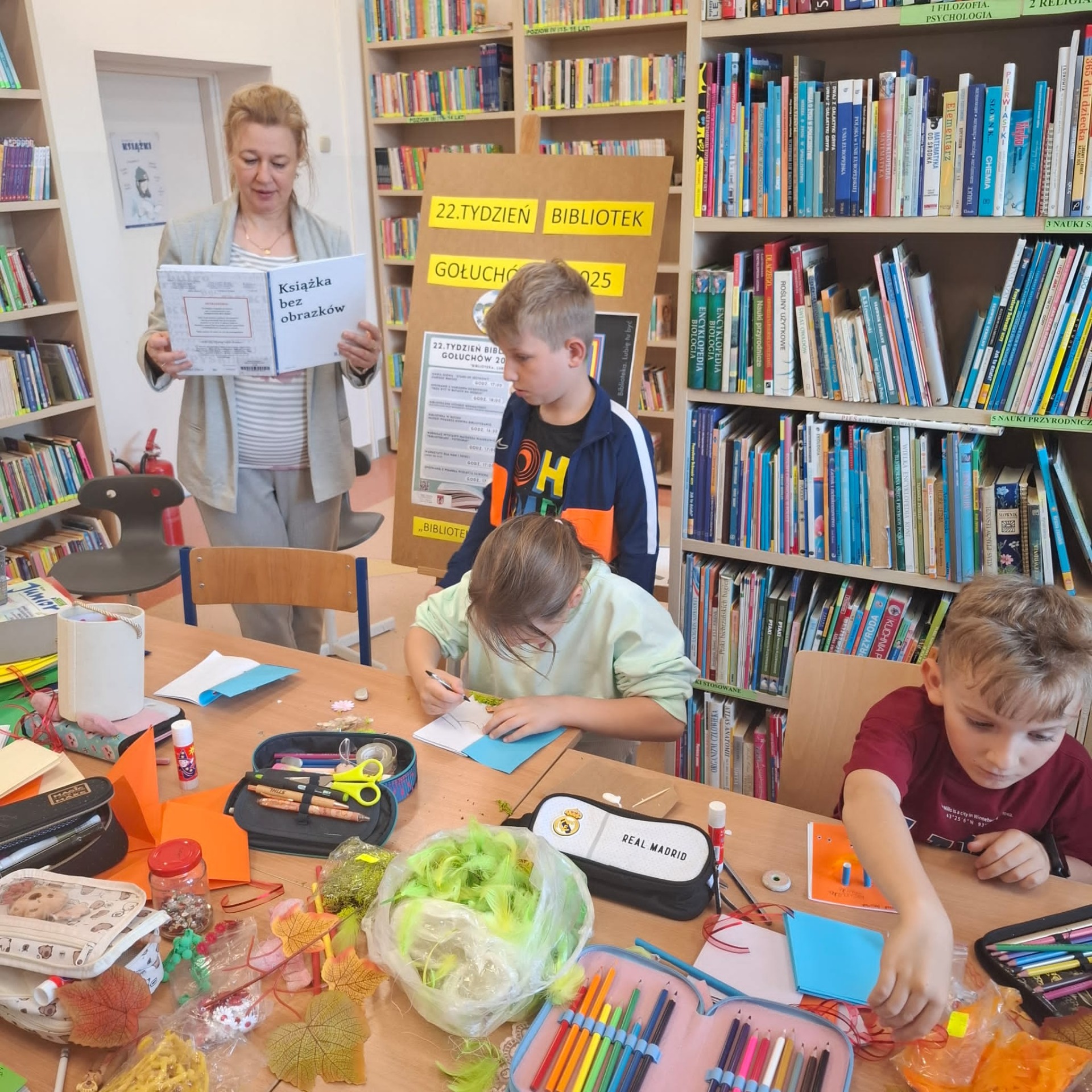 Nie zabrakło również zajęć artystycznych. Podczas warsztatów dzieci poznawały formę artbooków – książek artystycznych, w których historie opowiada się nie słowem, lecz obrazem. Wykorzystując różne techniki plastyczne, uczniowie tworzyli własne, unikalne dzieła, a następnie prezentowali je przed kolegami i koleżankami, dzieląc się swoimi pomysłami oraz przesłaniem ukrytym w pracach.
