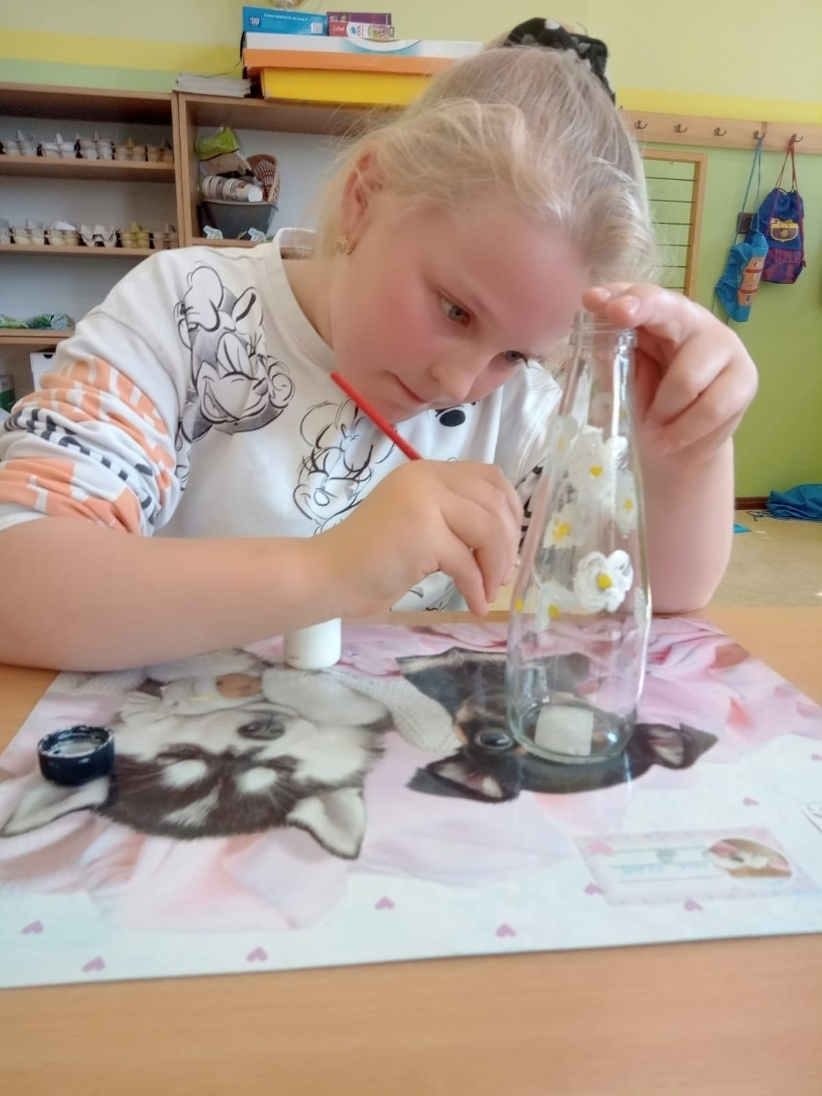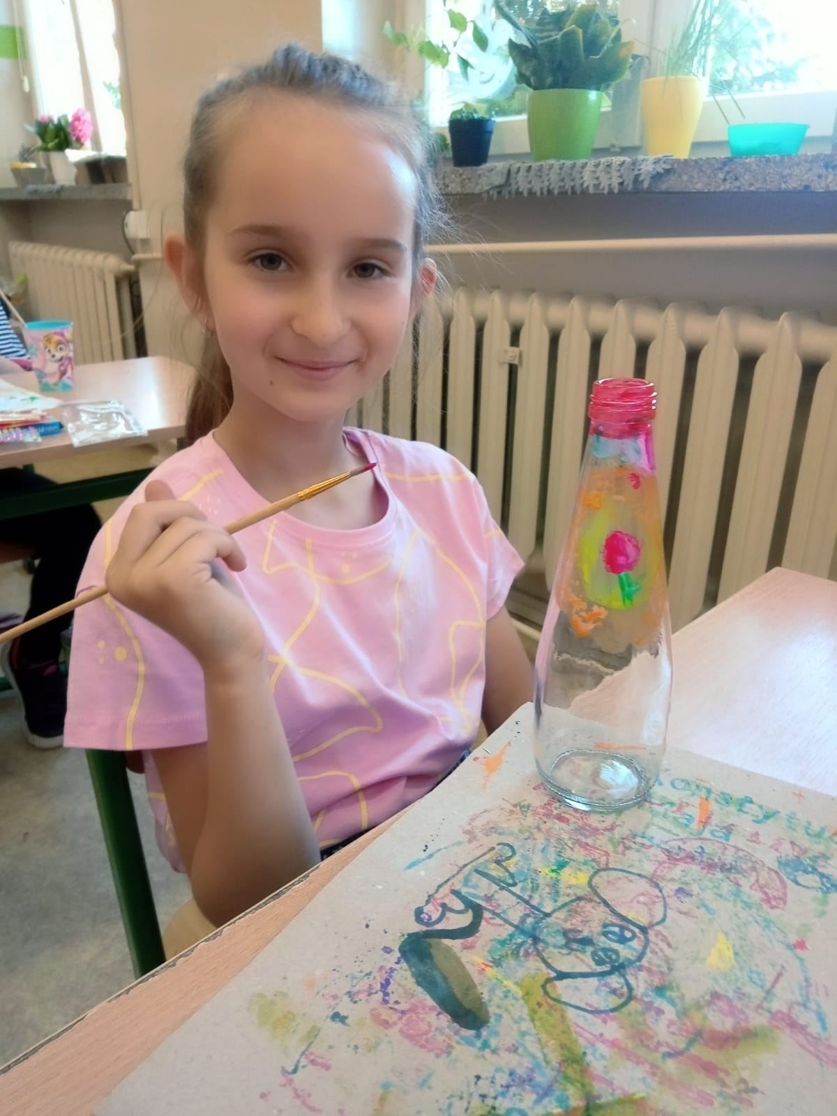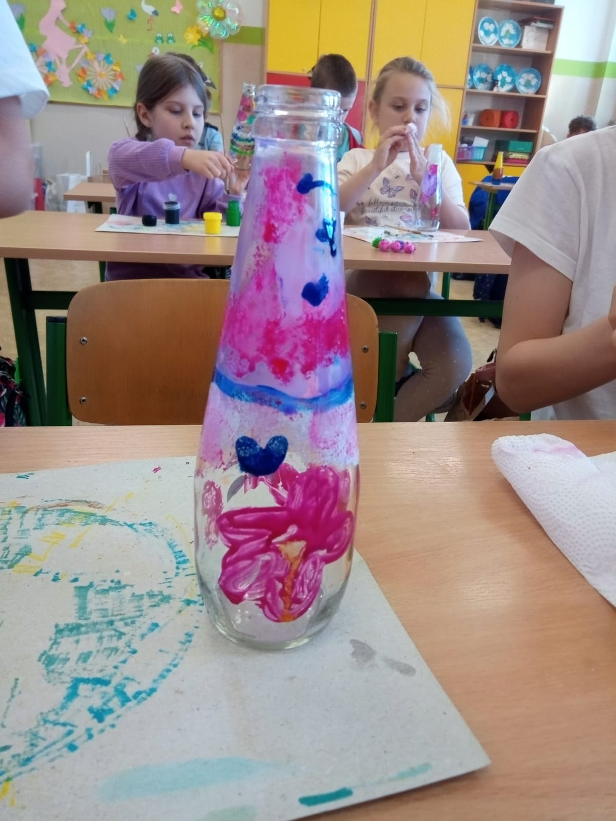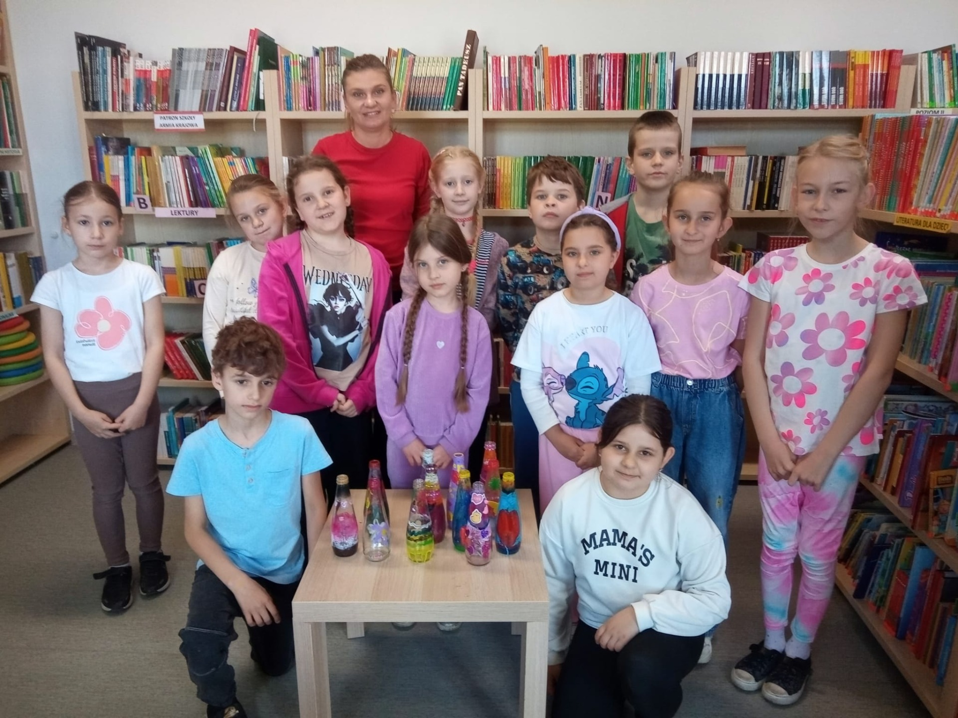 Z okazji Dnia Mamy w bibliotece w Tursku odbyły się warsztaty plastyczne, podczas których dzieci samodzielnie ozdabiały szklane wazoniki farbami do szkła. W ruch poszły pędzelki, palety barw i duża dawka wyobraźni. Każdy uczestnik mógł nadać swojemu wazonikowi indywidualny charakter – od kwiatowych motywów, przez geometryczne wzory, aż po fantazyjne, bajkowe zdobienia.