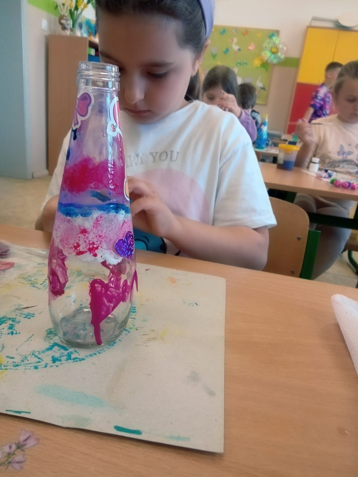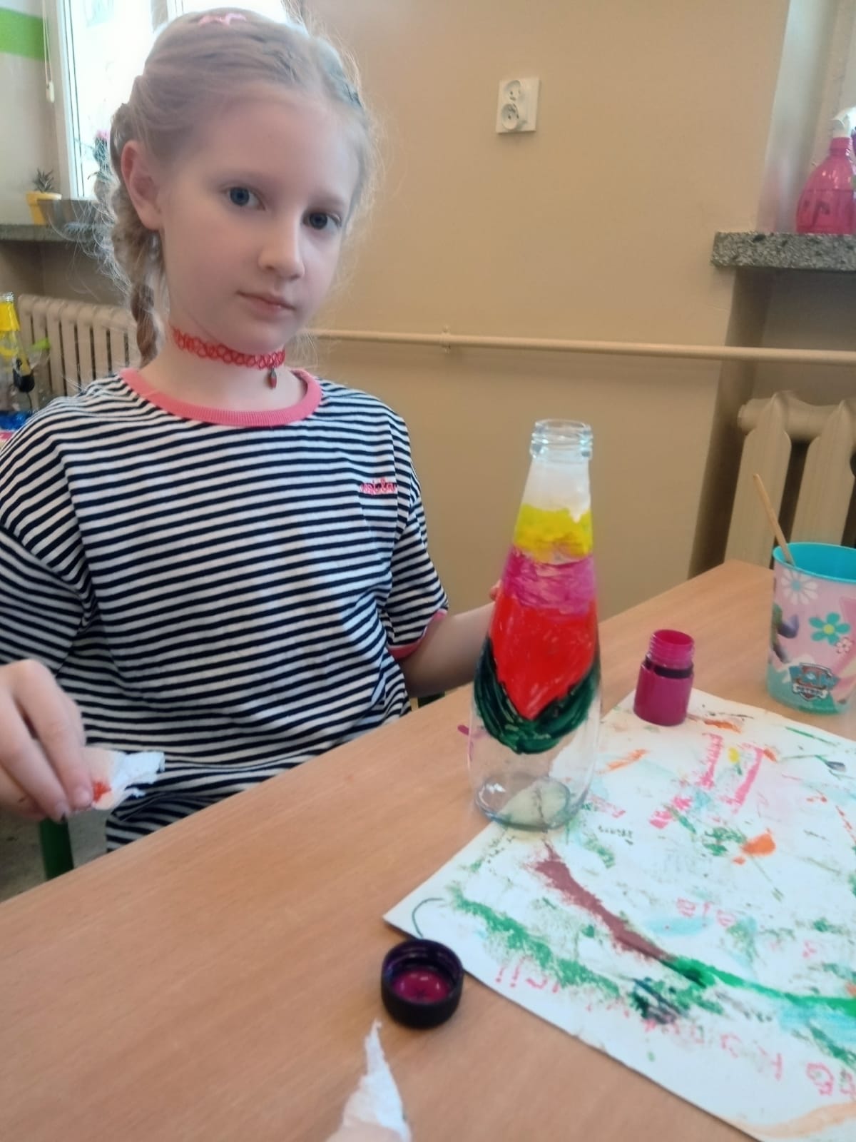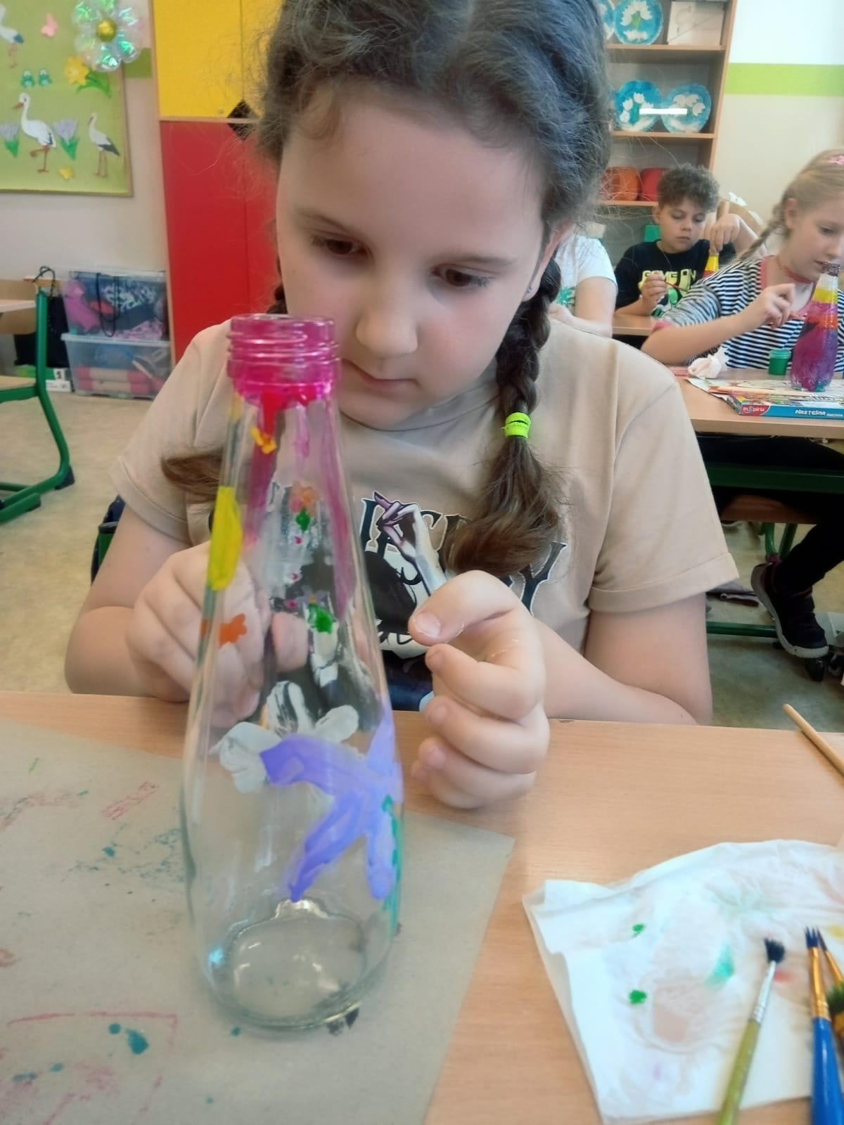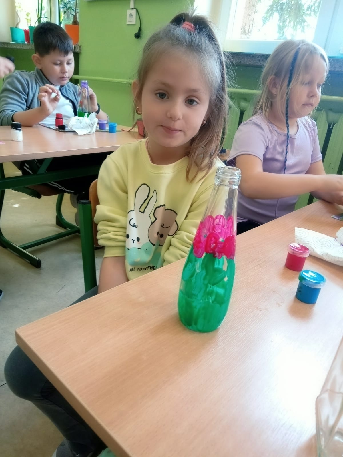 Z okazji Dnia Mamy w bibliotece w Tursku odbyły się warsztaty plastyczne, podczas których dzieci samodzielnie ozdabiały szklane wazoniki farbami do szkła. W ruch poszły pędzelki, palety barw i duża dawka wyobraźni. Każdy uczestnik mógł nadać swojemu wazonikowi indywidualny charakter – od kwiatowych motywów, przez geometryczne wzory, aż po fantazyjne, bajkowe zdobienia.