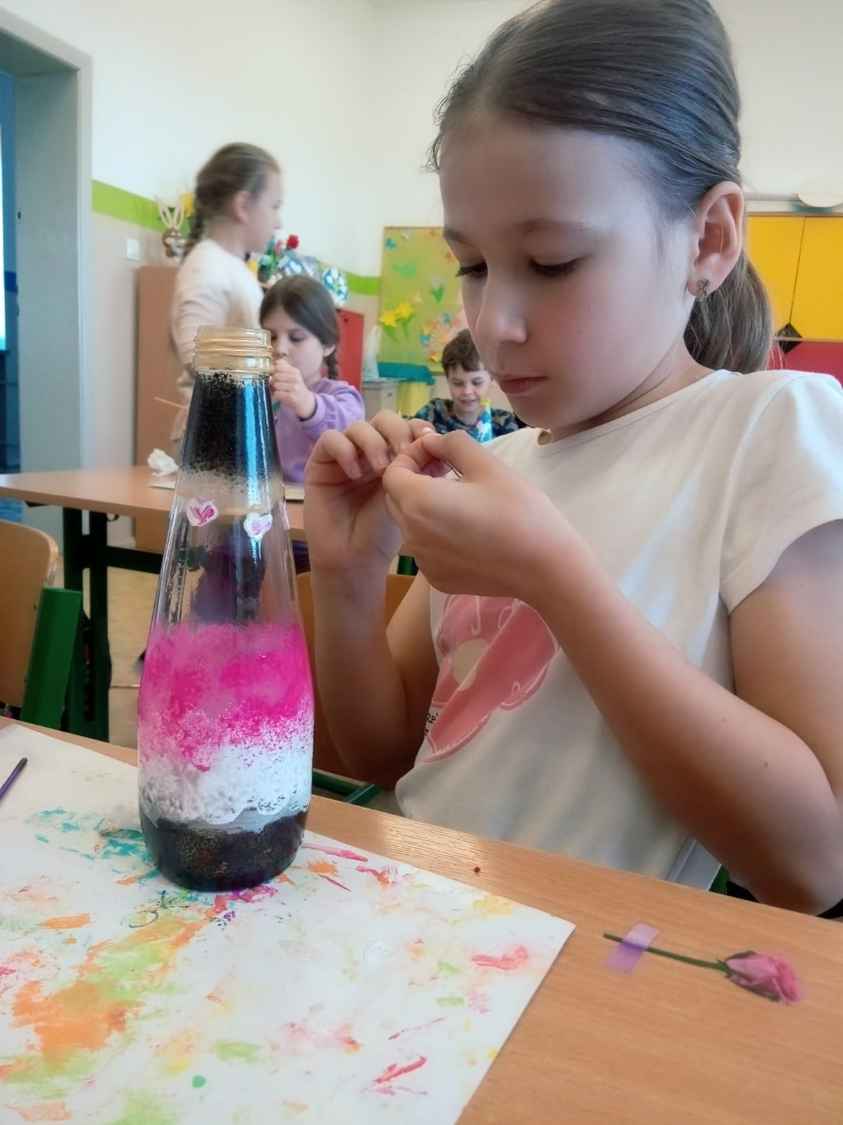 Efekt końcowy przeszedł najśmielsze oczekiwania – powstały kolorowe i bardzo pomysłowe upominki, które dzieci z radością zabrały do domu, by wręczyć swoim Mamom. Warsztaty pokazały, że nawet proste materiały mogą stać się okazją do twórczej zabawy i stworzenia pięknych pamiątek, a najważniejsze są emocje i gest płynący prosto z serca.