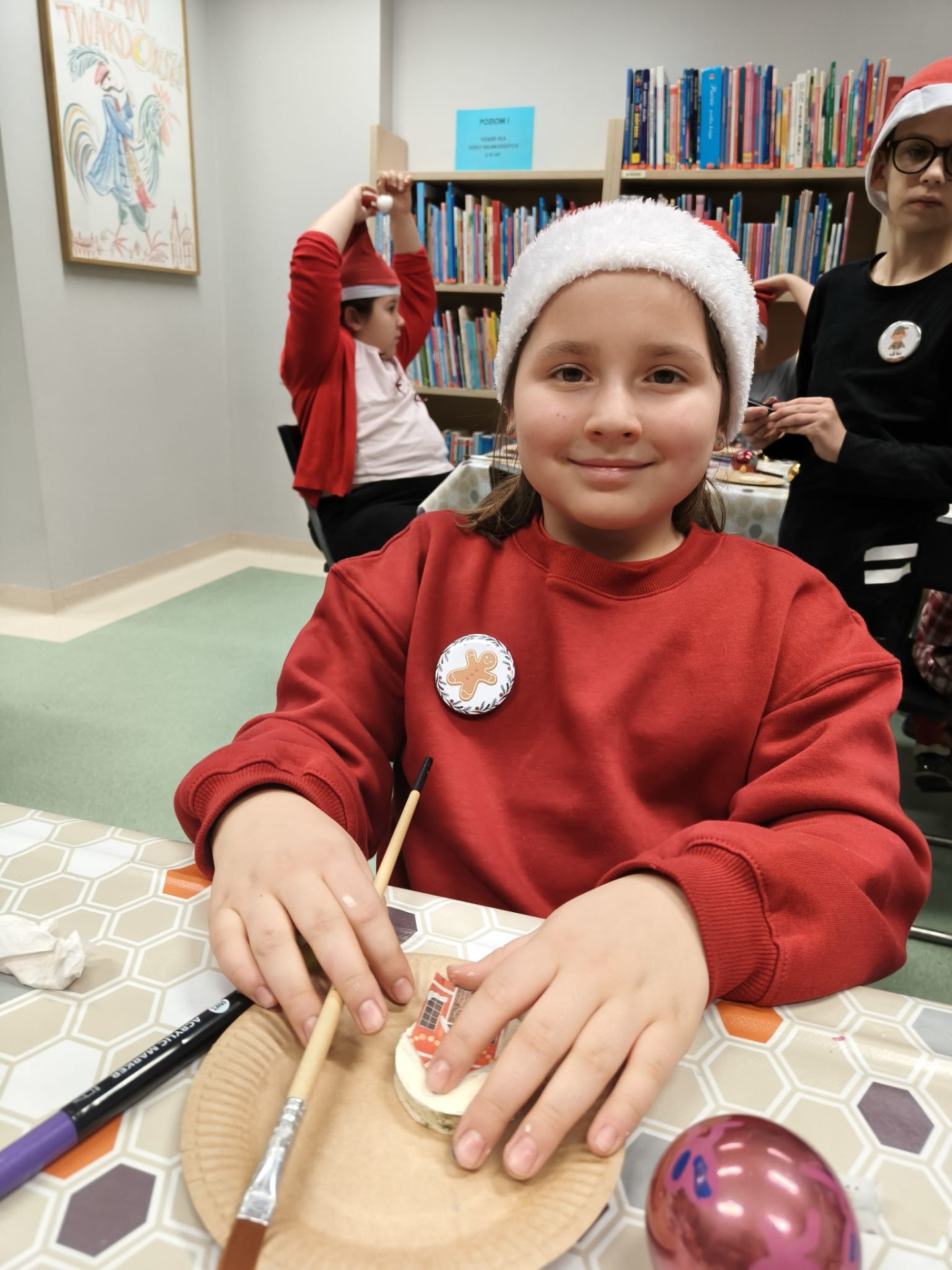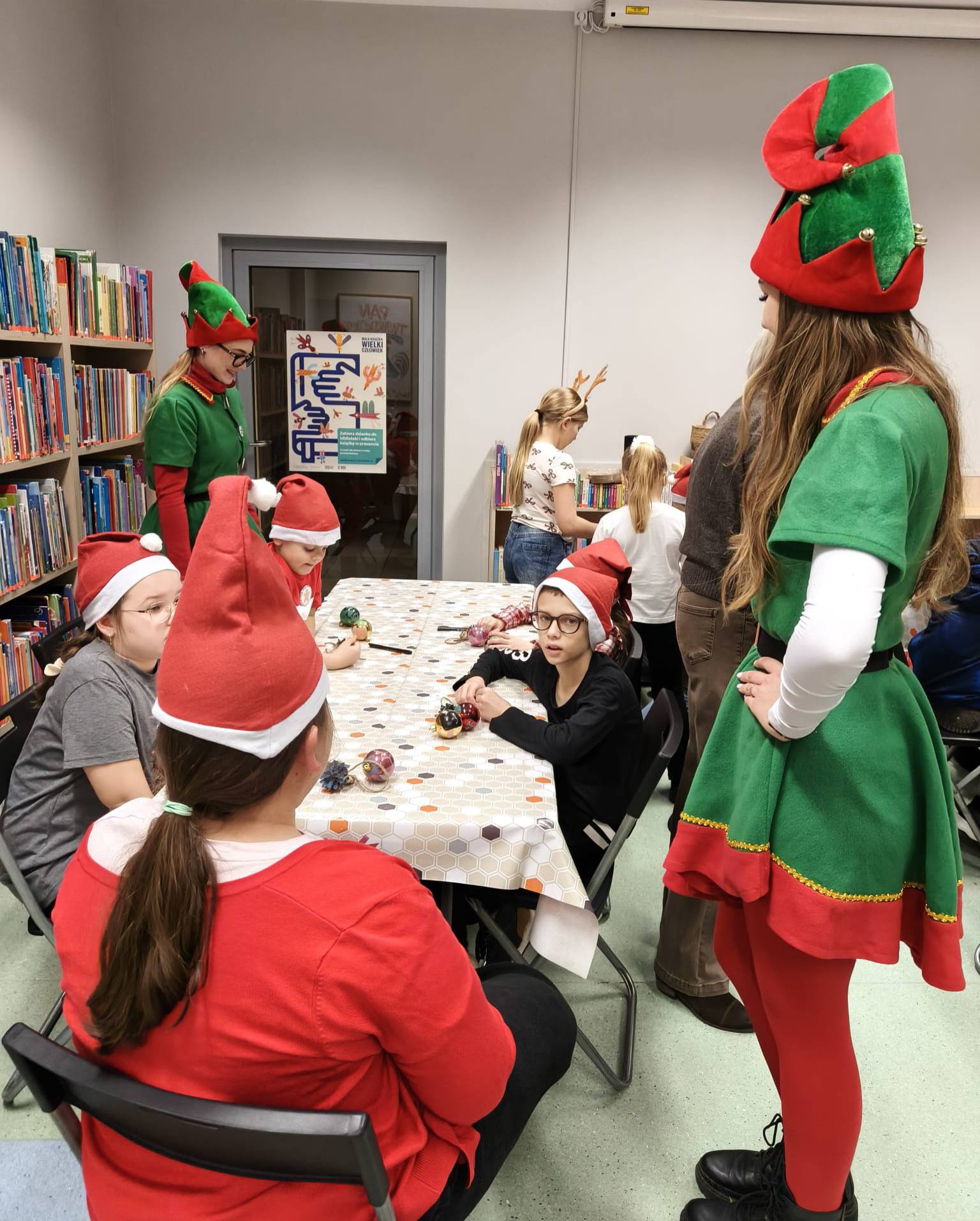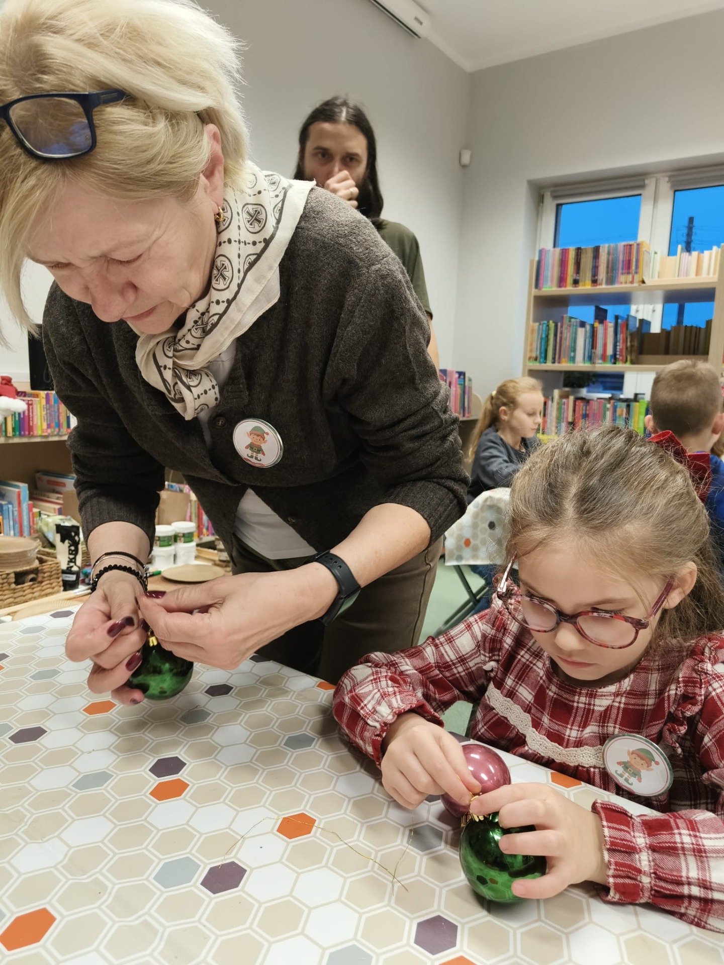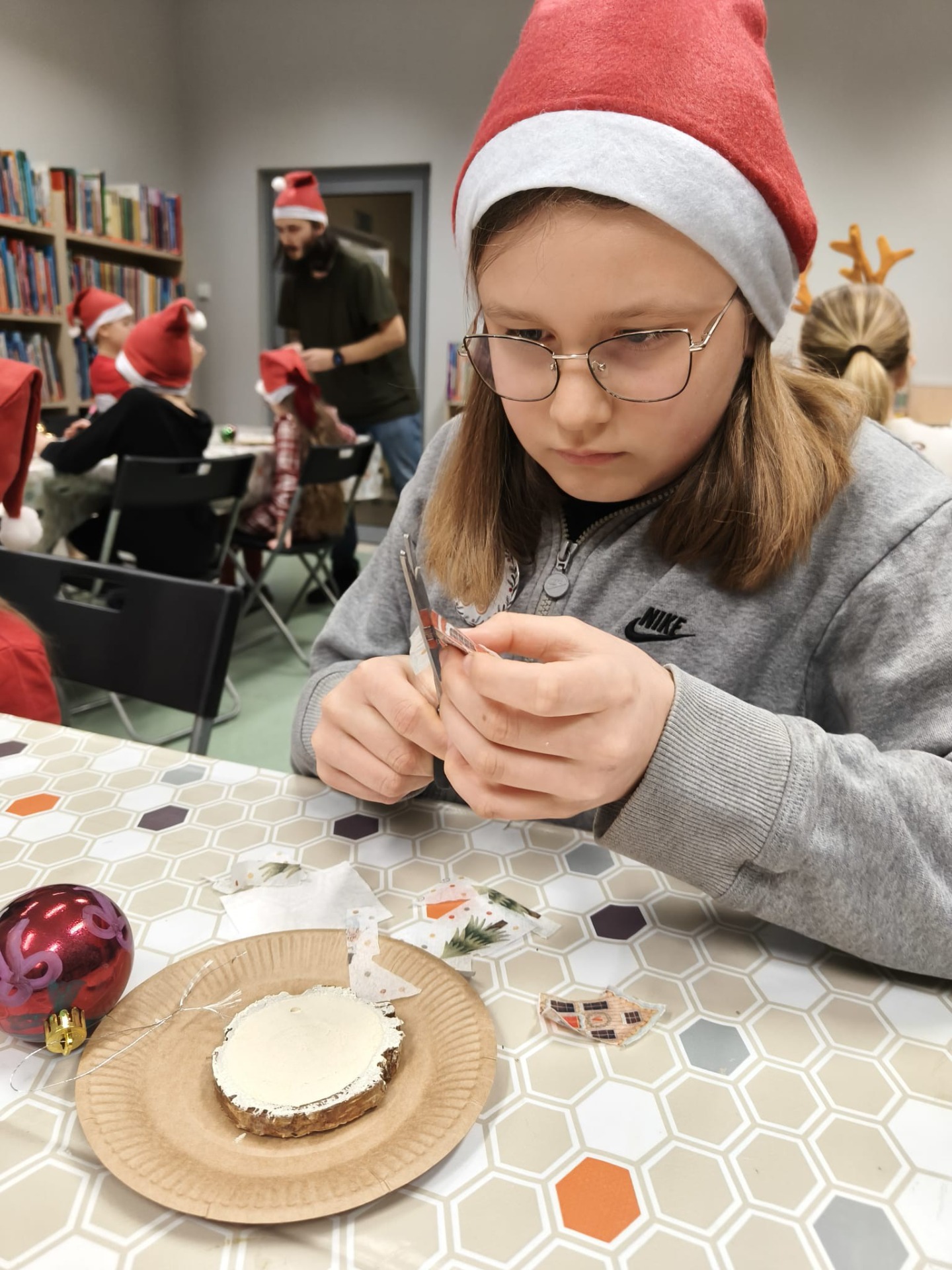 Zanim drzewko rozbłysło ciepłym światłem lampek, należało je starannie udekorować. Zadanie to przypadło pierwszej grupie warsztatowiczów, która wspólnie z animatorami z Uciechowa przygotowywała świąteczne ozdoby. W tym samym czasie druga grupa dzieci tworzyła dekoracje metodą book folding art, polegającą na precyzyjnym składaniu stron książek w finezyjne wzory – oczywiście i w tym przypadku królowały motywy świąteczne.