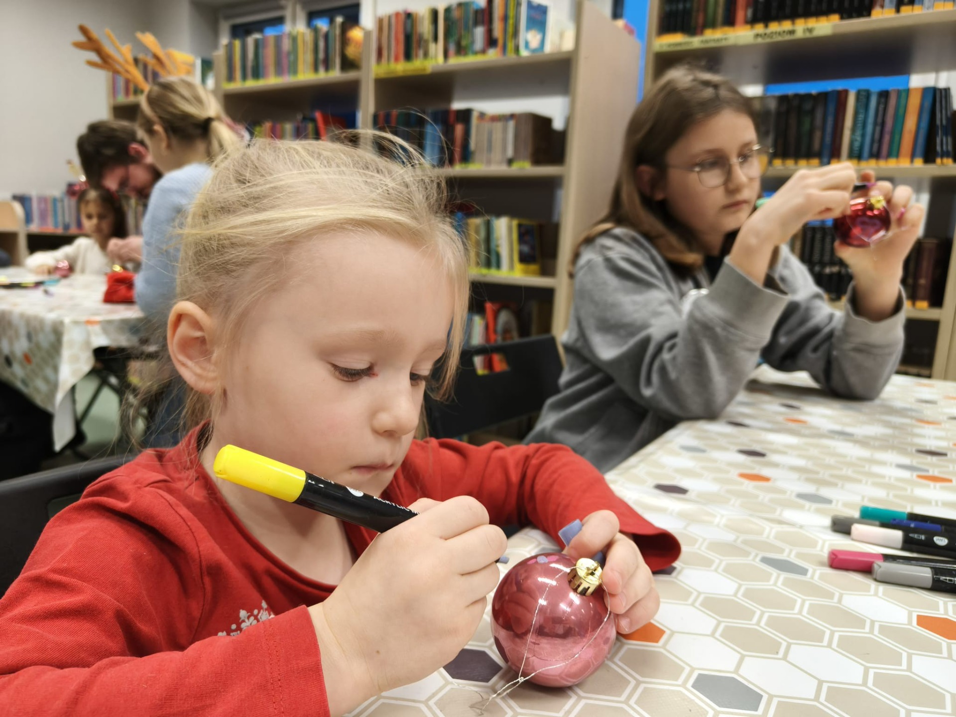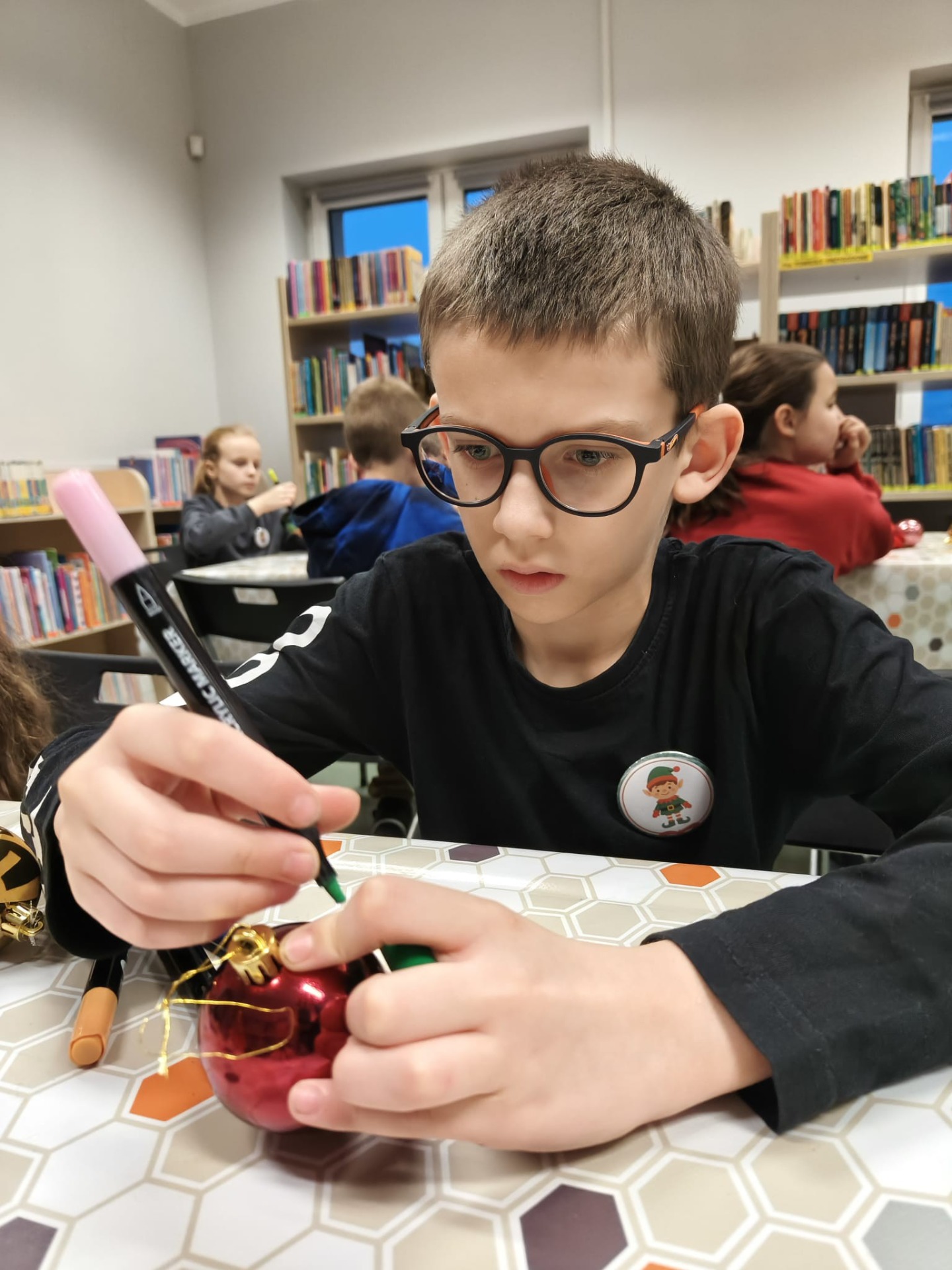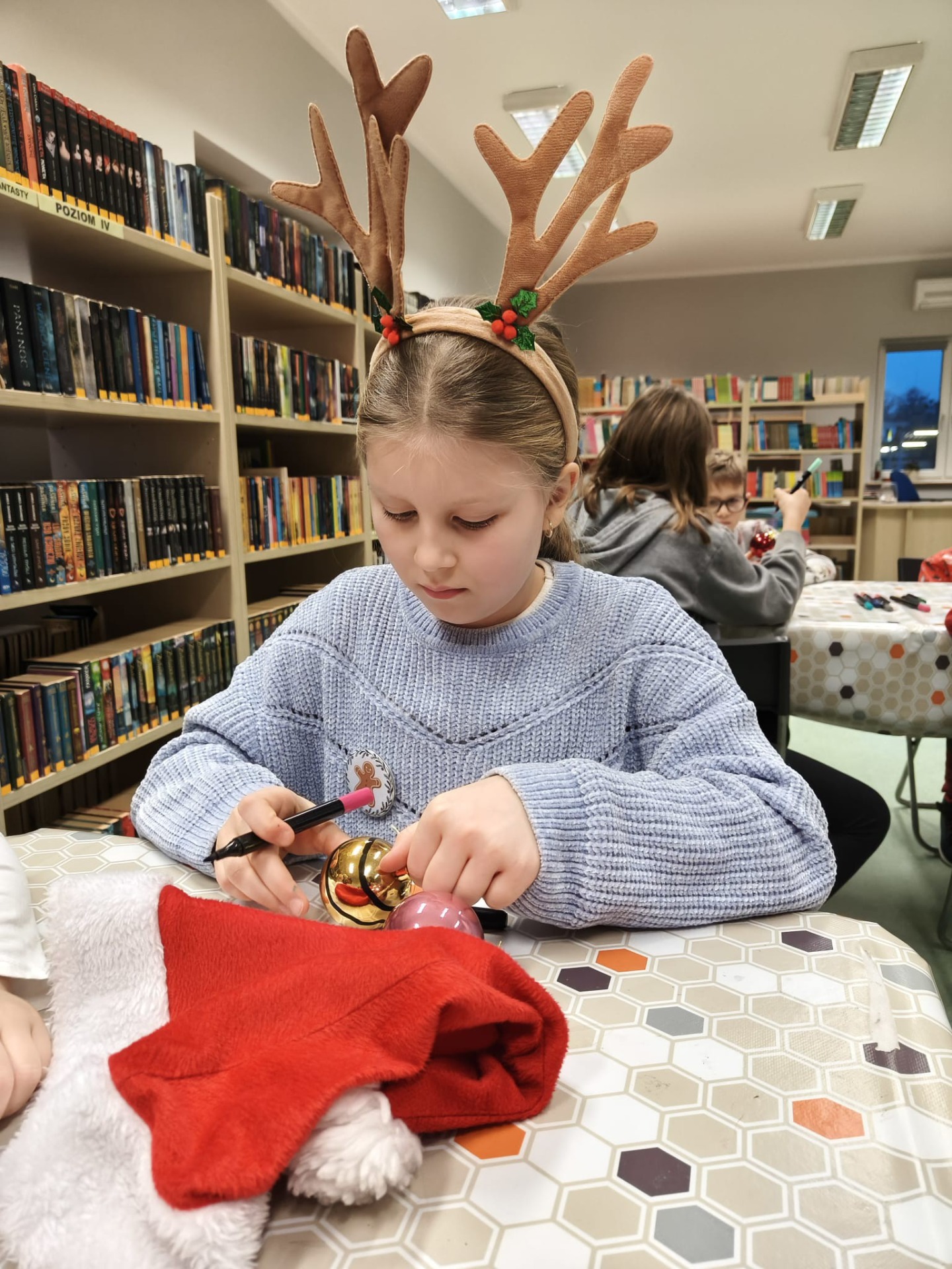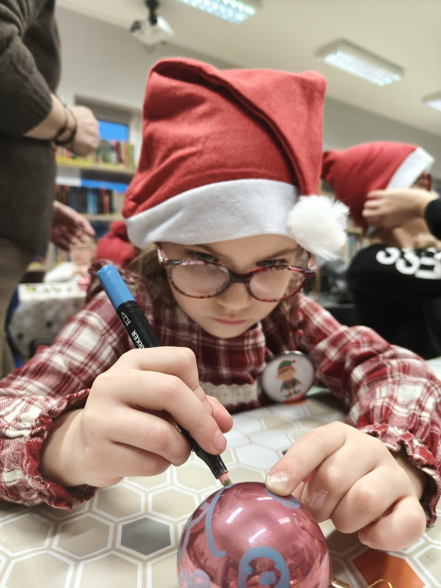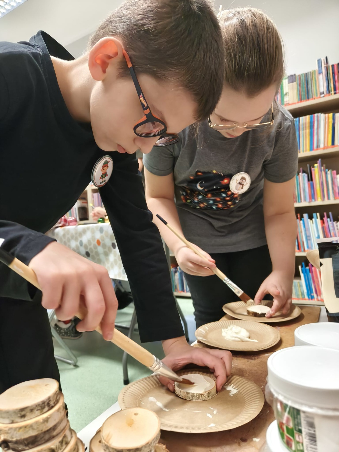 Zanim drzewko rozbłysło ciepłym światłem lampek, należało je starannie udekorować. Zadanie to przypadło pierwszej grupie warsztatowiczów, która wspólnie z animatorami z Uciechowa przygotowywała świąteczne ozdoby. W tym samym czasie druga grupa dzieci tworzyła dekoracje metodą book folding art, polegającą na precyzyjnym składaniu stron książek w finezyjne wzory – oczywiście i w tym przypadku królowały motywy świąteczne.