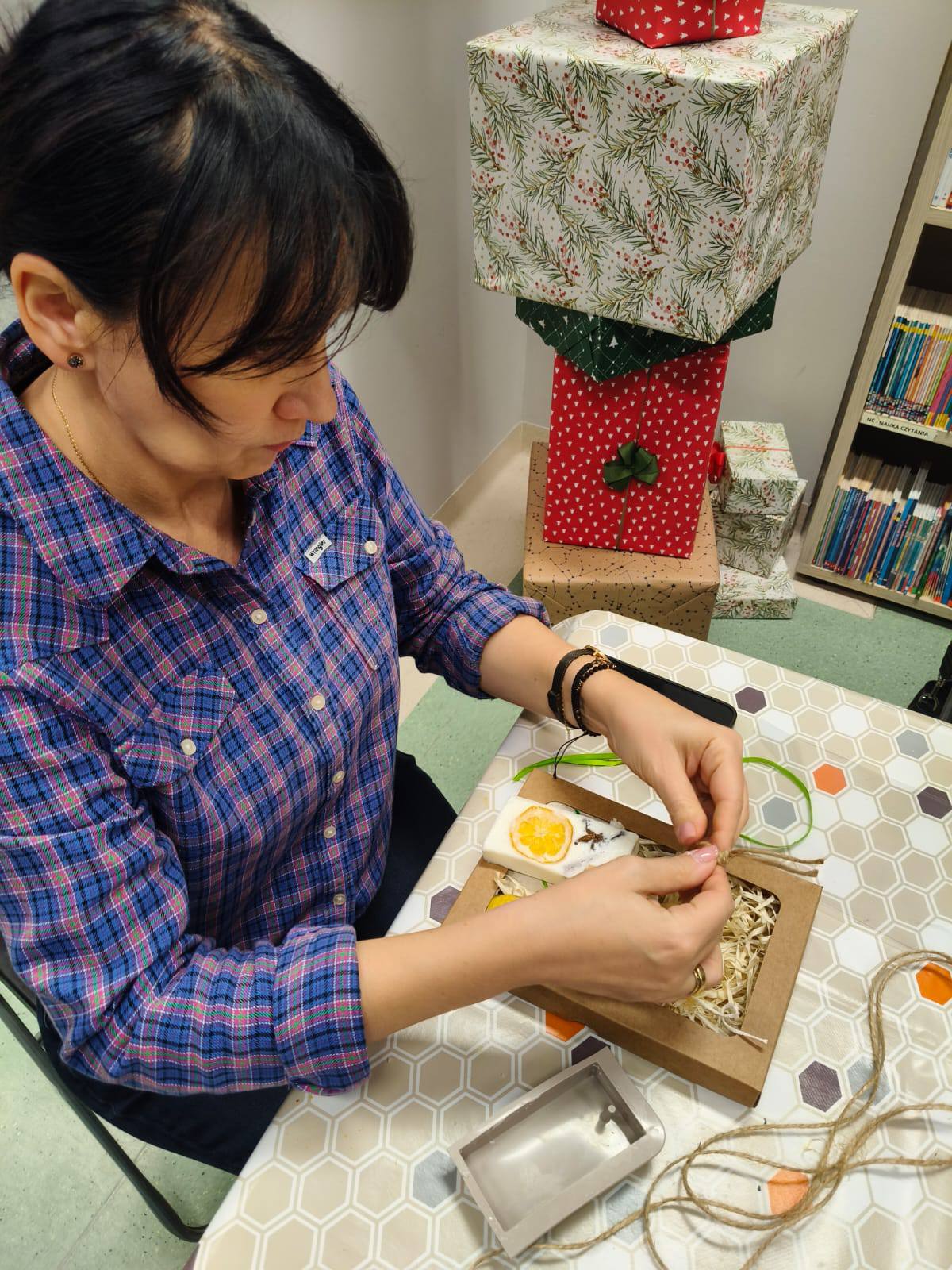 Prawie trzy godziny pracy i w efekcie własnoręcznie wykonane upominki – tak wyglądały świąteczne warsztaty, które w poniedziałkowe popołudnie 15 grudnia poprowadziła dla nas Hanna Wojtyczka z „Warsztatowni Mydło i Powidło”.
